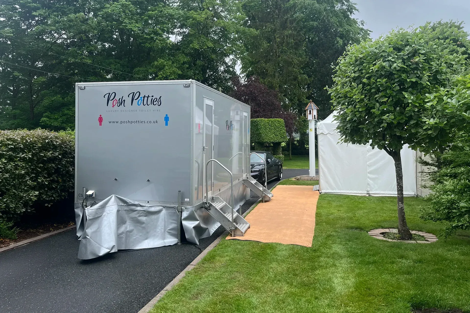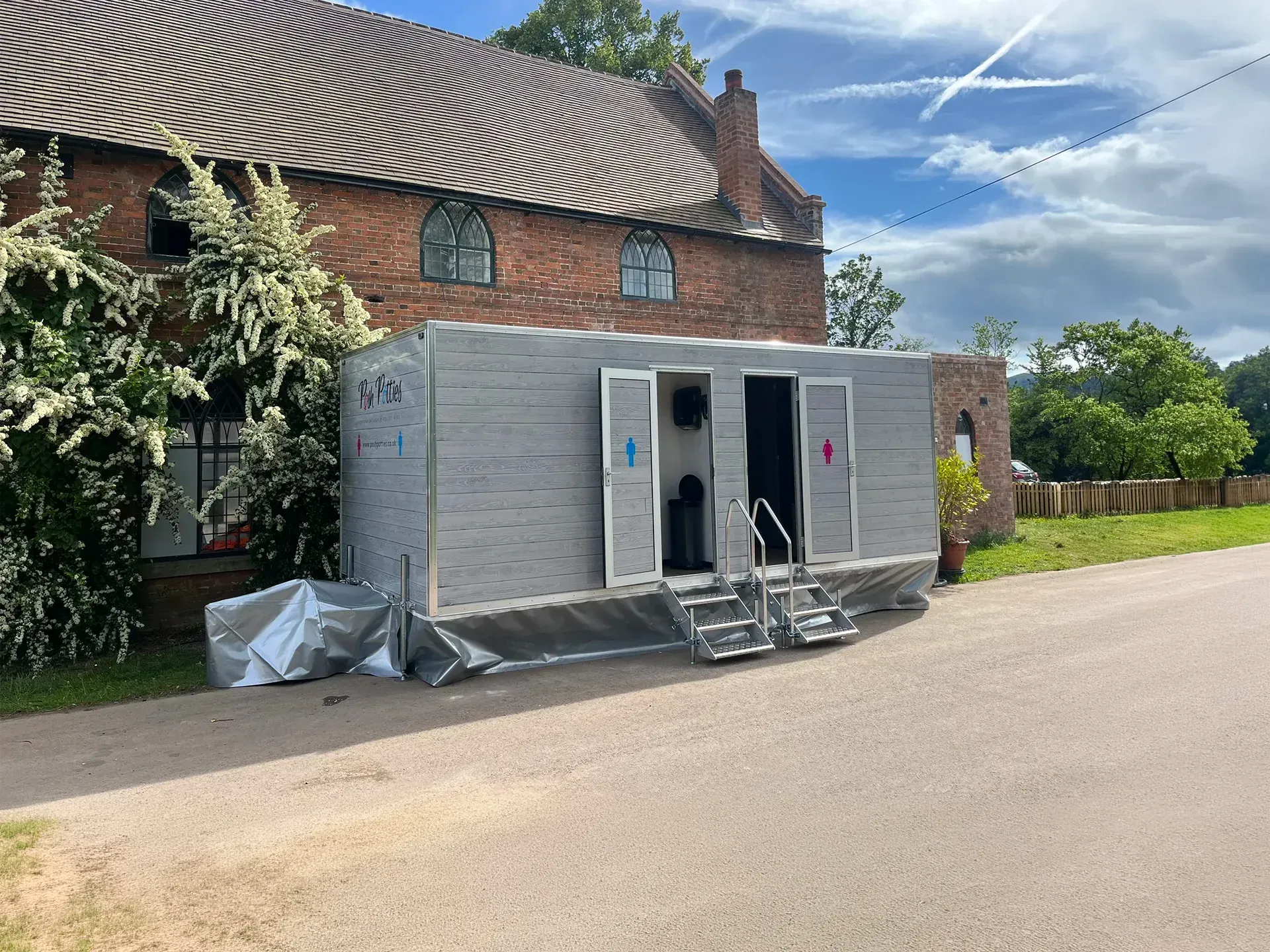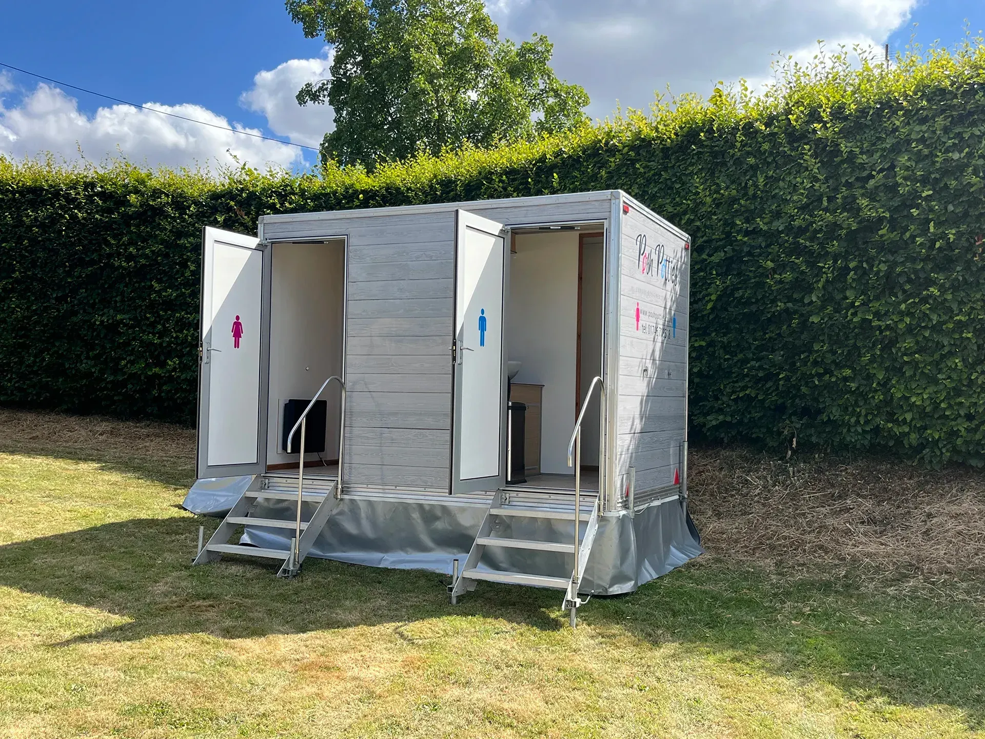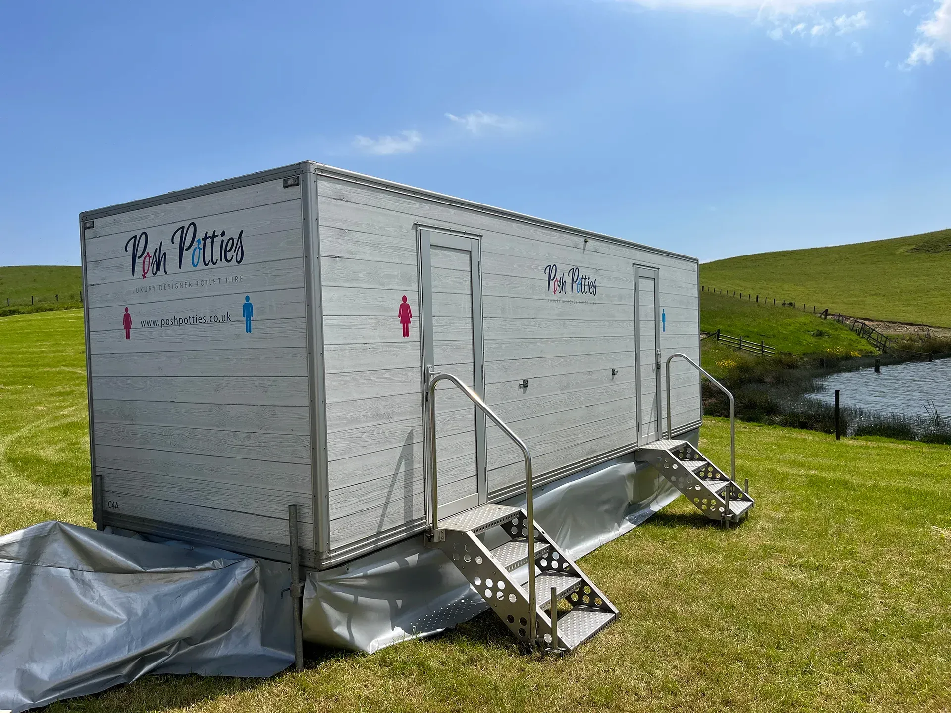 All of our units are self contained, with their own water supply and waste storage, needing only a 13 amp electrical supply.