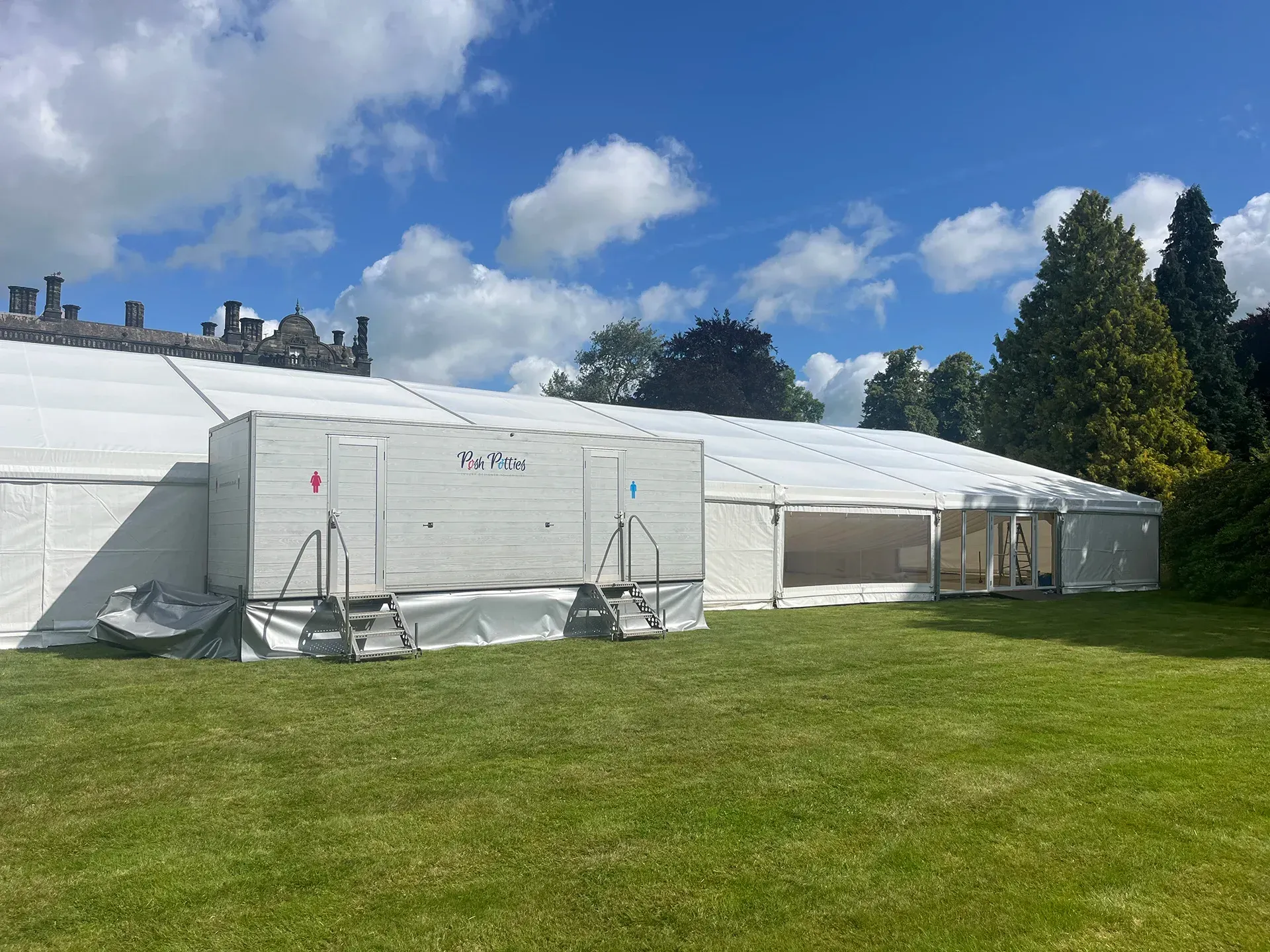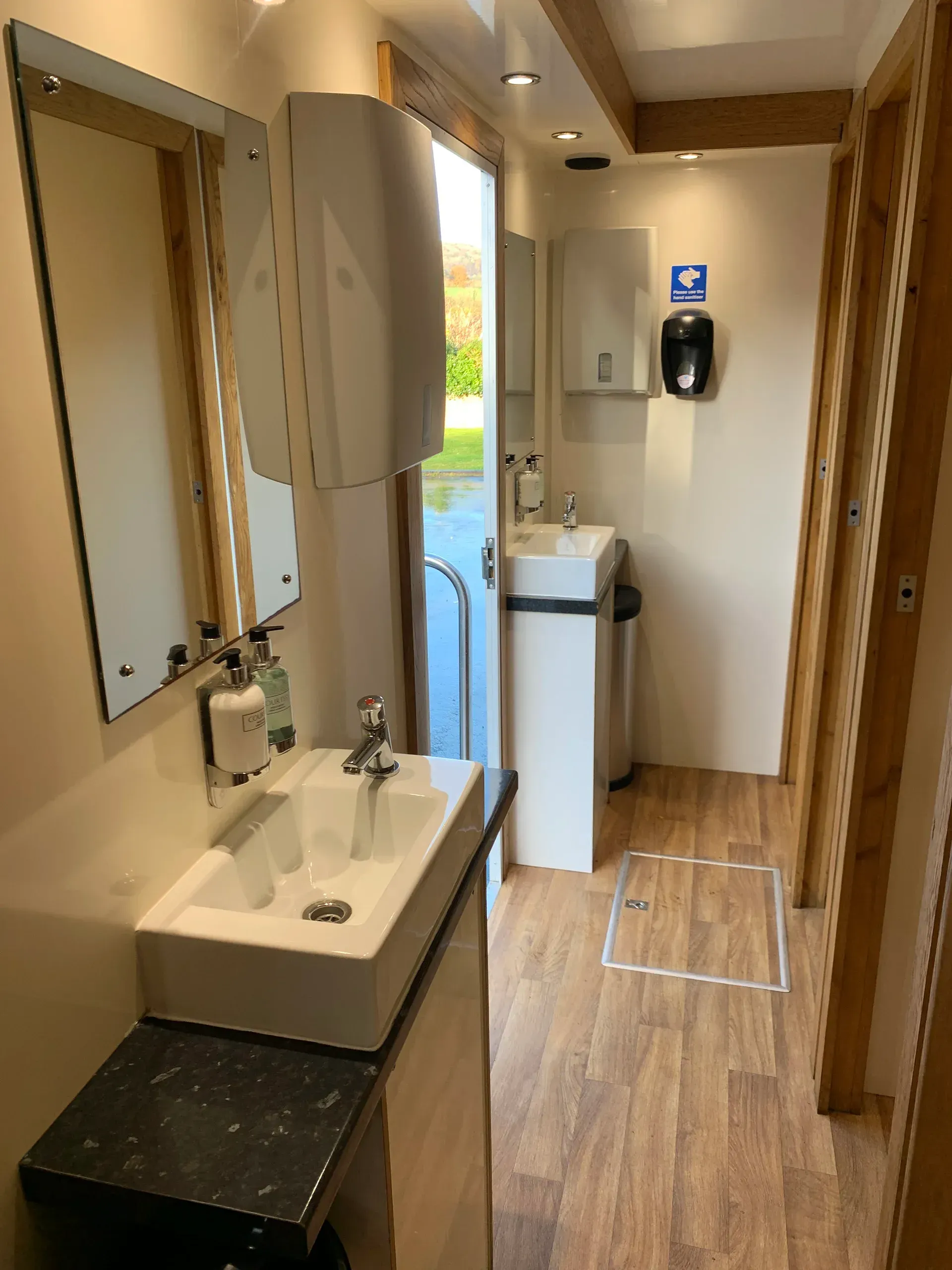 Accommodating 100-400 guests, our stylish array of mobile toilets features a bright and airy oak interior complemented by energy-efficient modern lighting.